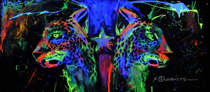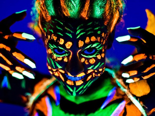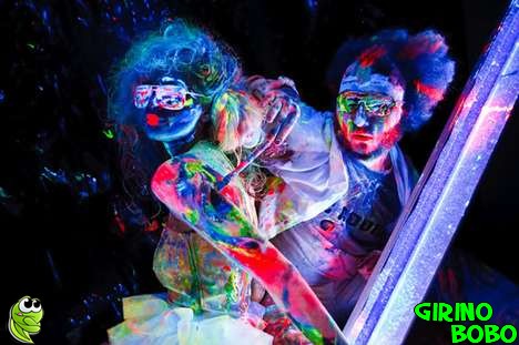 performance de pintura ao vivo com tinta fluorecente e luz negra