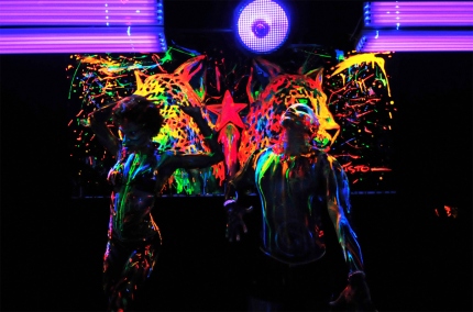 Tambem podemos adicionar bailarinas com body painting fluorecent ( pintura corporal fluorecente).